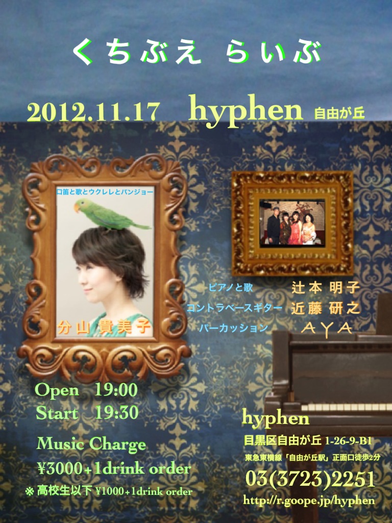 2012年11月17日、自由が丘 hyphenでライブを行います。